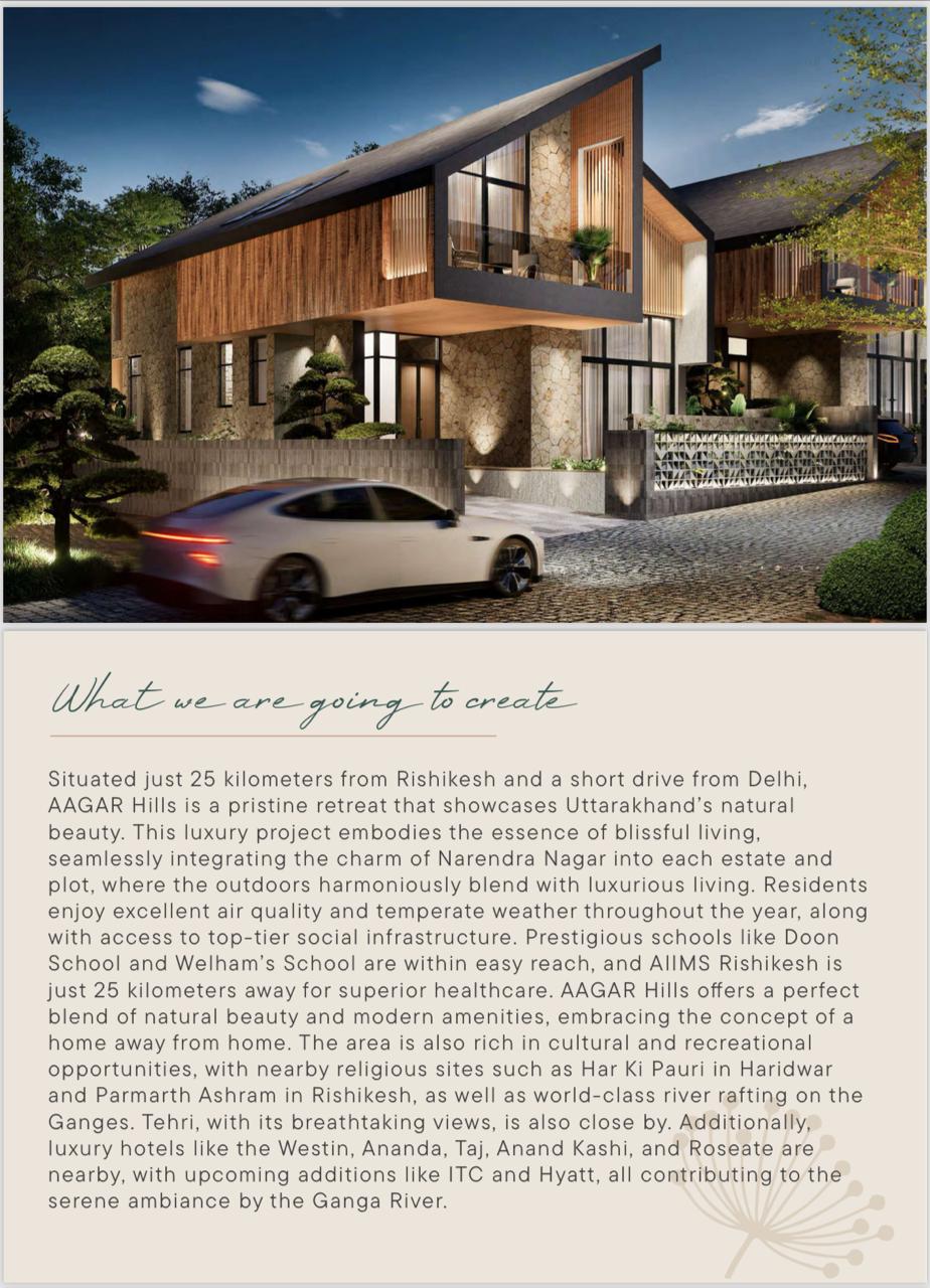 Nestled at an elevation of 6,500 ft, the Aagar Hills project offers unparalleled panoramic views of the majestic Himalayas, as well as the Dehradun Airport. The property boasts stunning valley views from both sides, making it a truly scenic retreat.